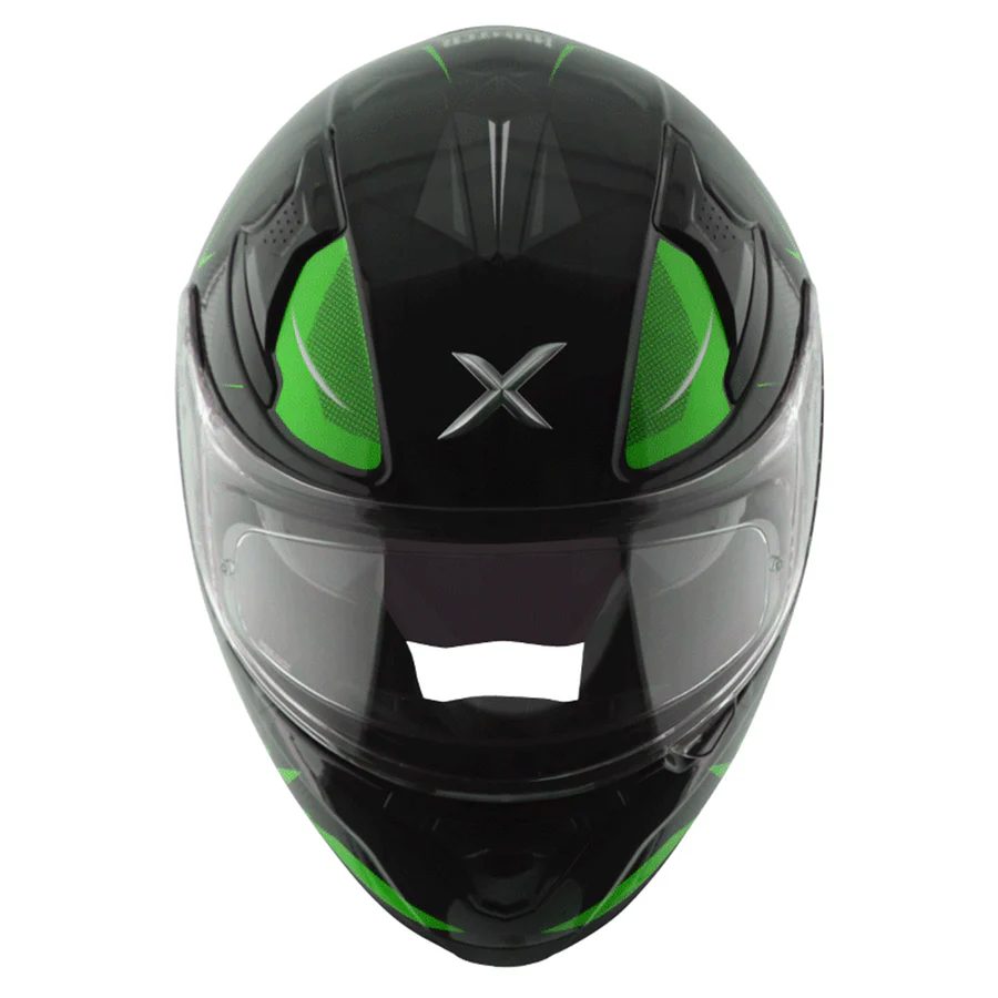 Upper air intake vent is positioned to maximize air volume into the helmet interior, Back outlet vent is integrated with pc spoiler, allowing it to be positioned for optimum flow-through ventilation, Breath guard and chin curtain included