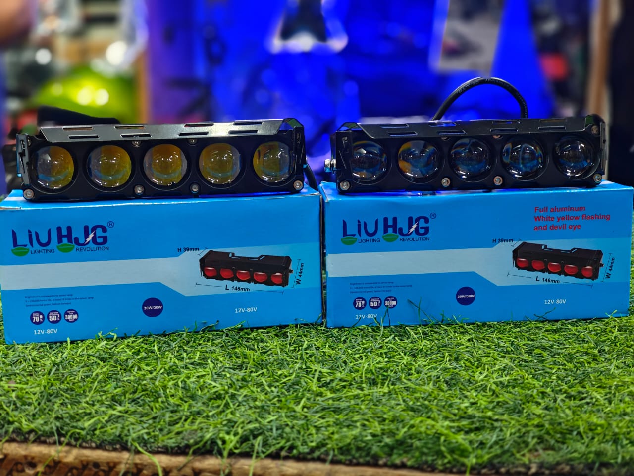 HJG Future Eyes 5 Lens HJG 5 Lens Without Fan NEW MEGA DRIVE Fog Light For Bike/Car/Thar/Jeep ( Cool White/Yellow/Warm White/Flash/Red DRL ) – Pack of 2 Future Eyes 5 Lens with Red DRL HJG